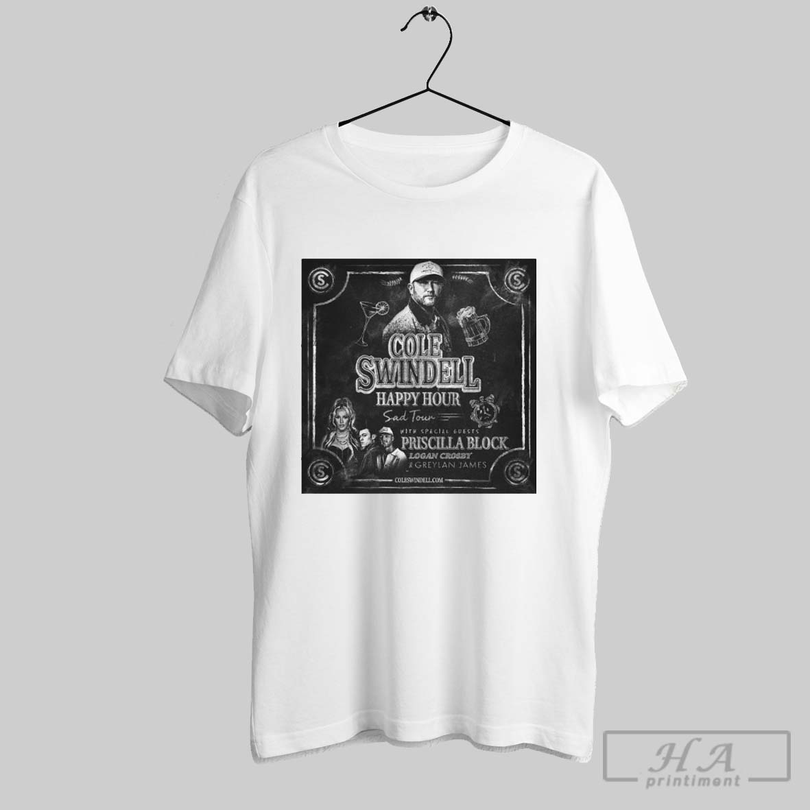 Cole Swindell Happy Hour Sad Tour With Priscilla Block Logan Crosby And Greylan James 2025 T Shirt