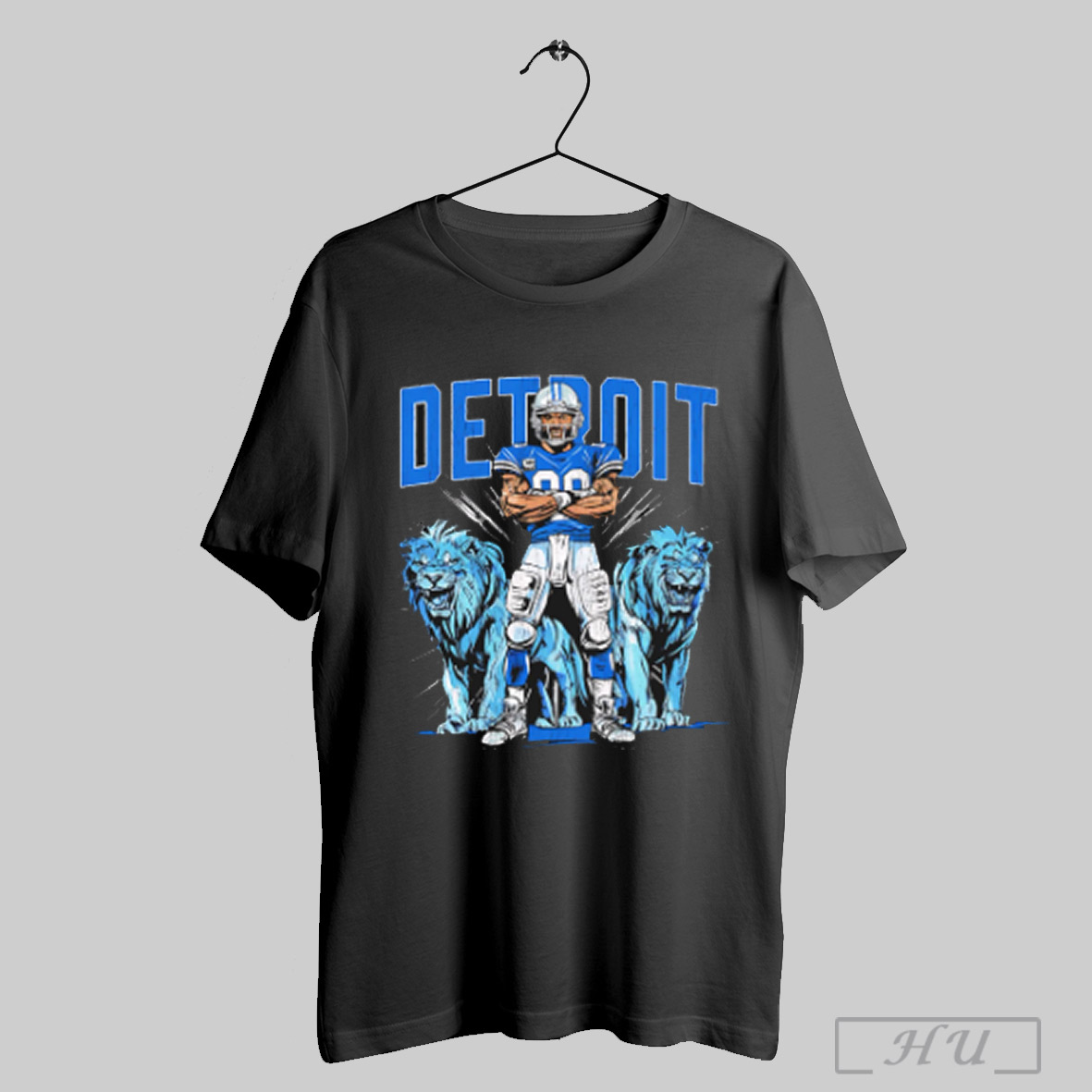 Detroit Lions Football Player With Two Roaring Blue Lions Top Tier T Shirt Sweatshirt