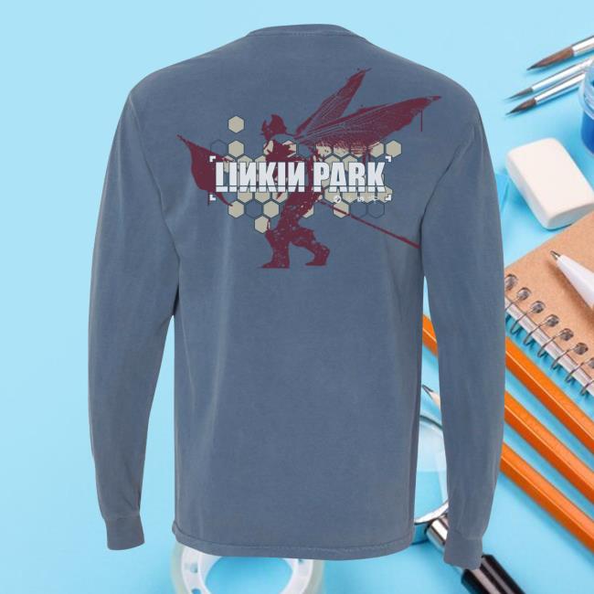 Linkin Park Store Merch Vintage Honeycomb Soldier Blue Ls Pocket Tee