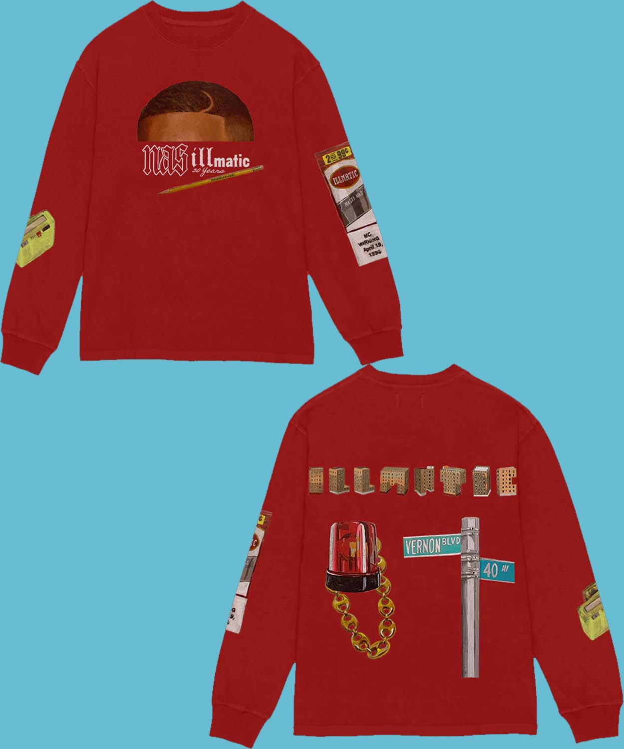Nasir Jones Merch 30 Years Of Illmatic Red Long Sleeve