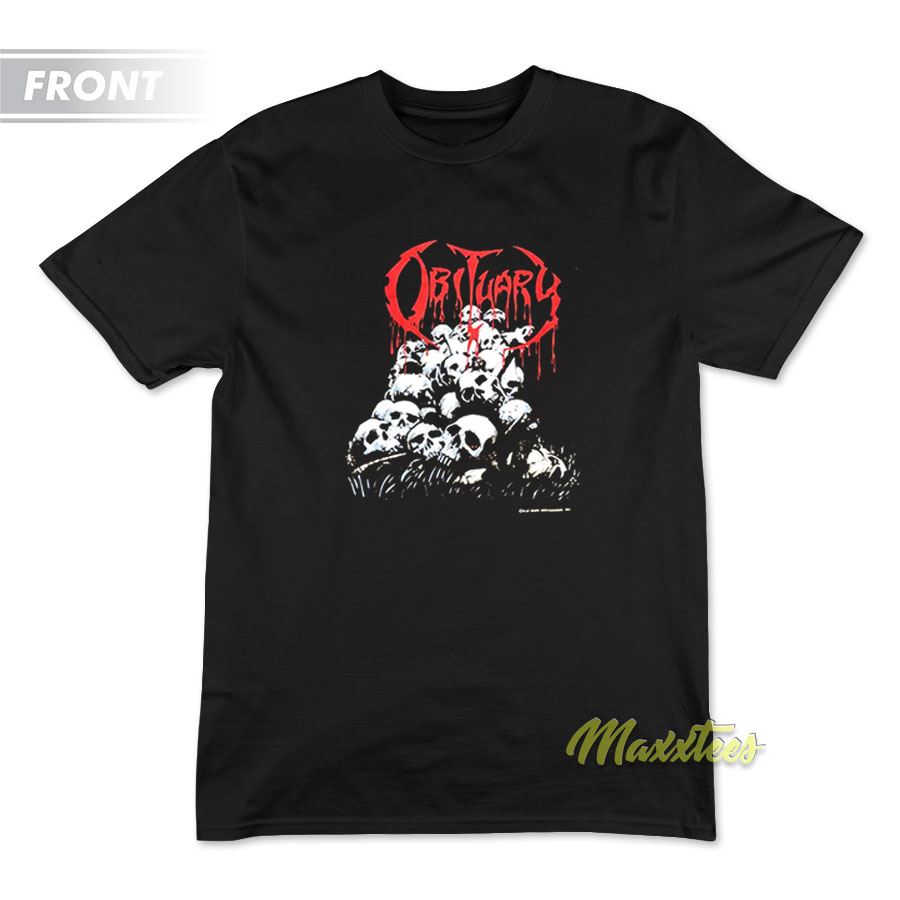 Obituary Cause Of Death Pile Of Skulls T-shirt