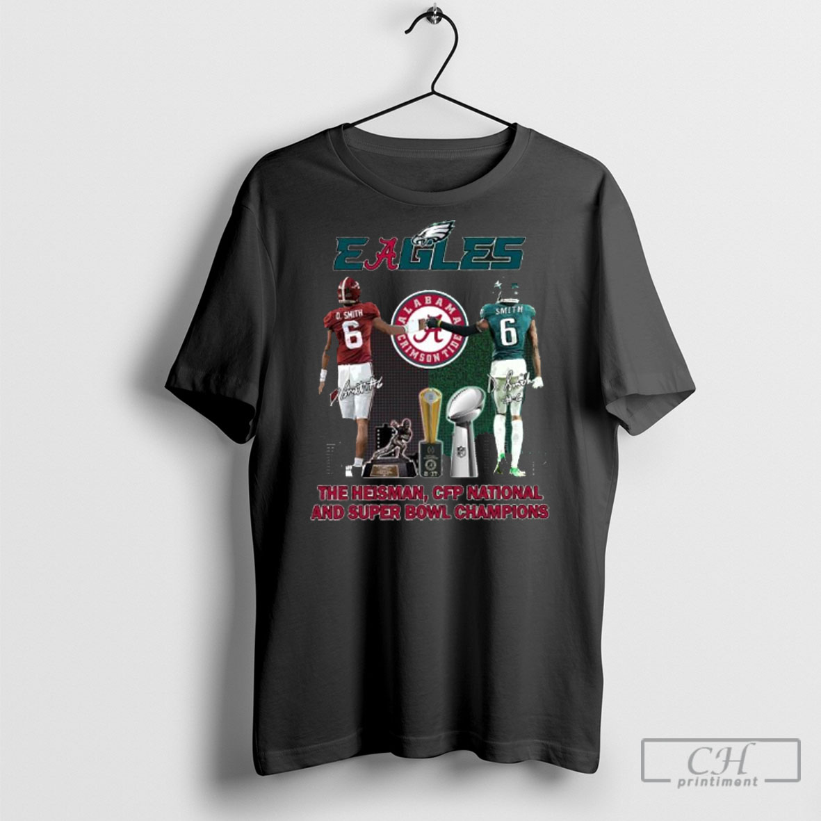 Official Eagles Devonta Smith Alabama And Eagles The Heisman Cfp National And Super Bowl Champions Shirt Tee Sweatshirt
