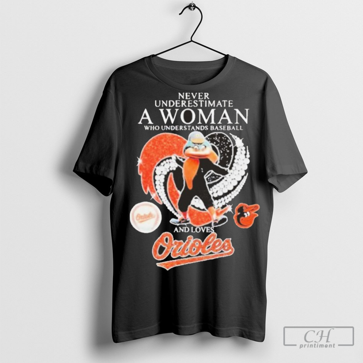 Official Never Underestimate A Woman Who Understands Baseball And Loves Baltimore Orioles Diamond Heart T Shirt
