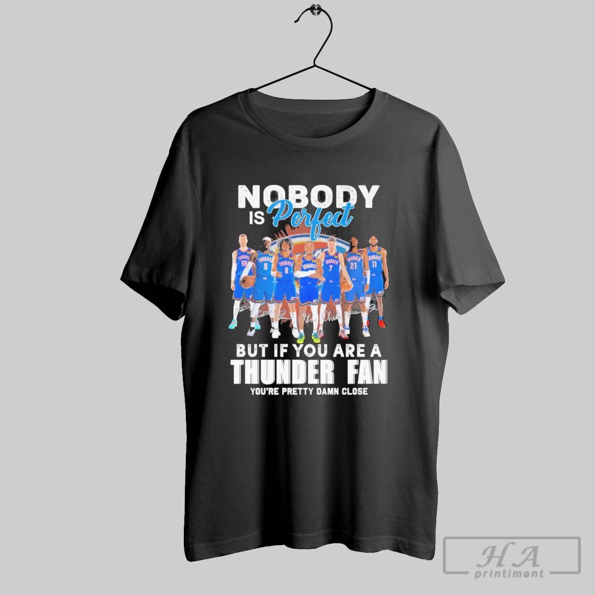 Official Nobody Is Perfect But If You Are A Oklahoma City Thunder Fan You Are Pretty Damn Close T Shirt