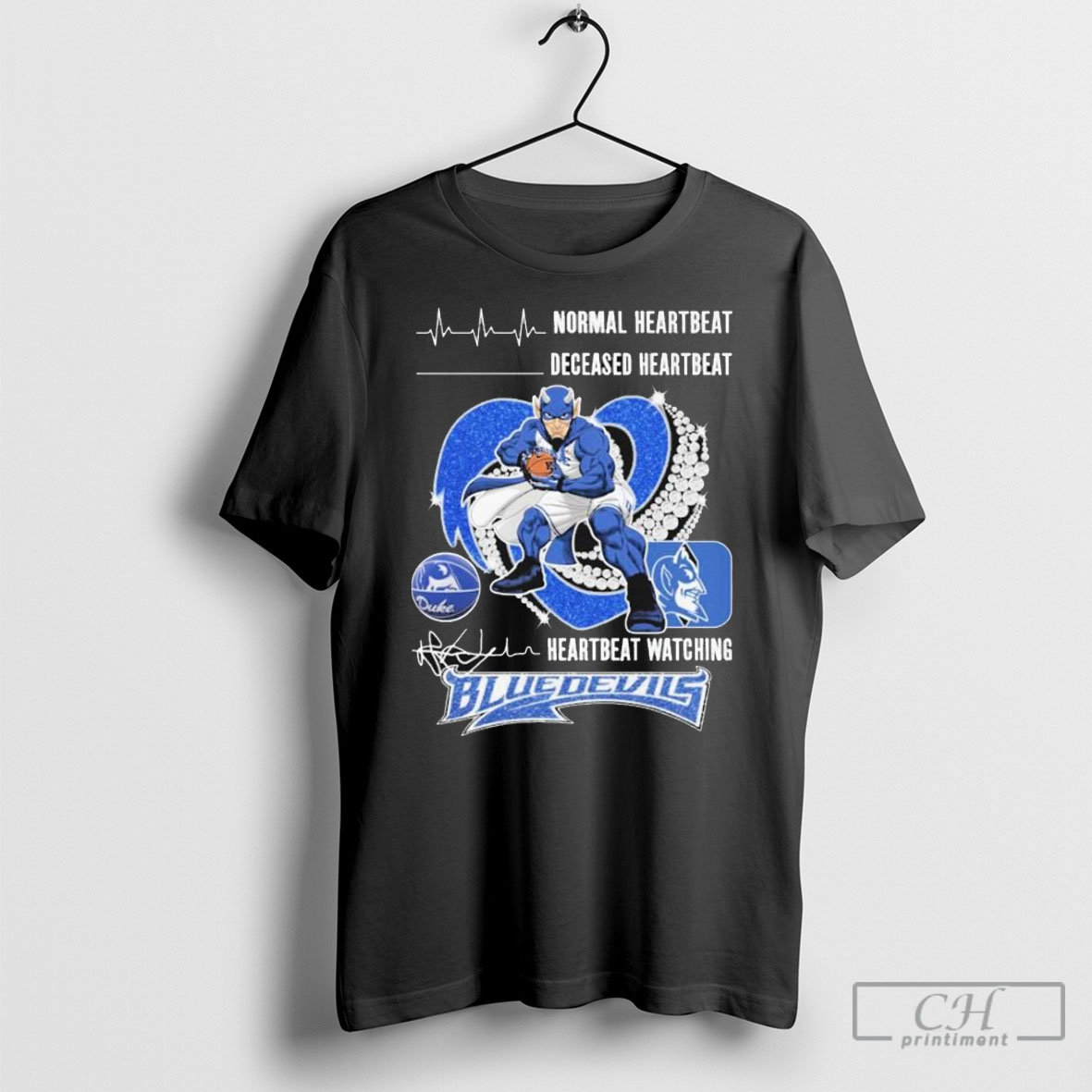 Official Normal Heartbeat Deceased Heartbeat Watching Duke Blue Devils Mascot Diamond Heart Shirt Sweatshirt