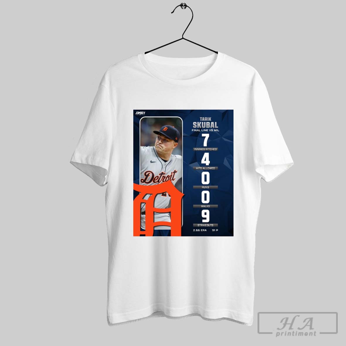 Official Tarik Skubal Detroit Tigers Final Line Vs Mil 7 Innings Pitched 4 Hits Allowed 9 Strikeouts Poster T Shirt