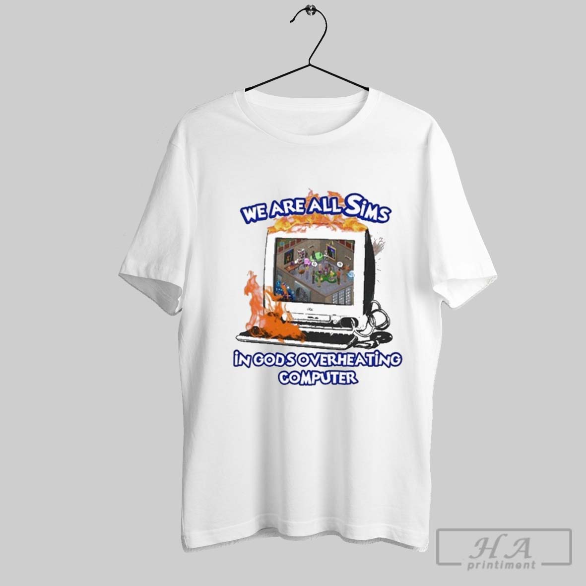 Official We Are All Sims In Gods Overheating Computer T Shirts