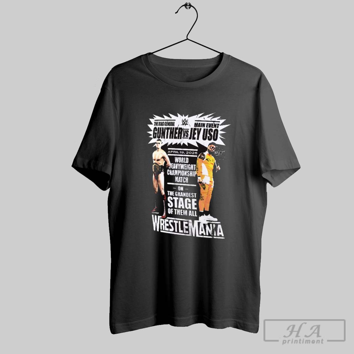 Official Wrestlemania 41 Jey Uso Vs Gunther 4 19 2025 World Heavyweight Championship Match On The Grandest Stage Of Them All Wwe T Shirt