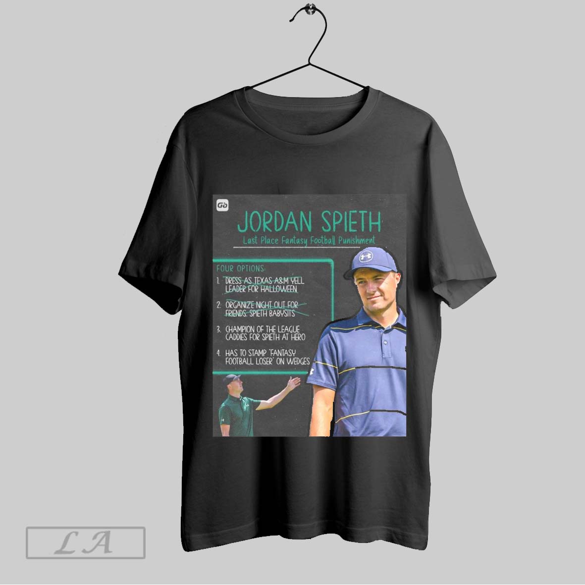 Original Jordan Spieth Last Place Fantasy Football Punishment Down To Two Options Champion Of The League Has To Stamp Fantasy Football Loser On Wedges Poster T Shirt Sweatshirt Tee Shirt