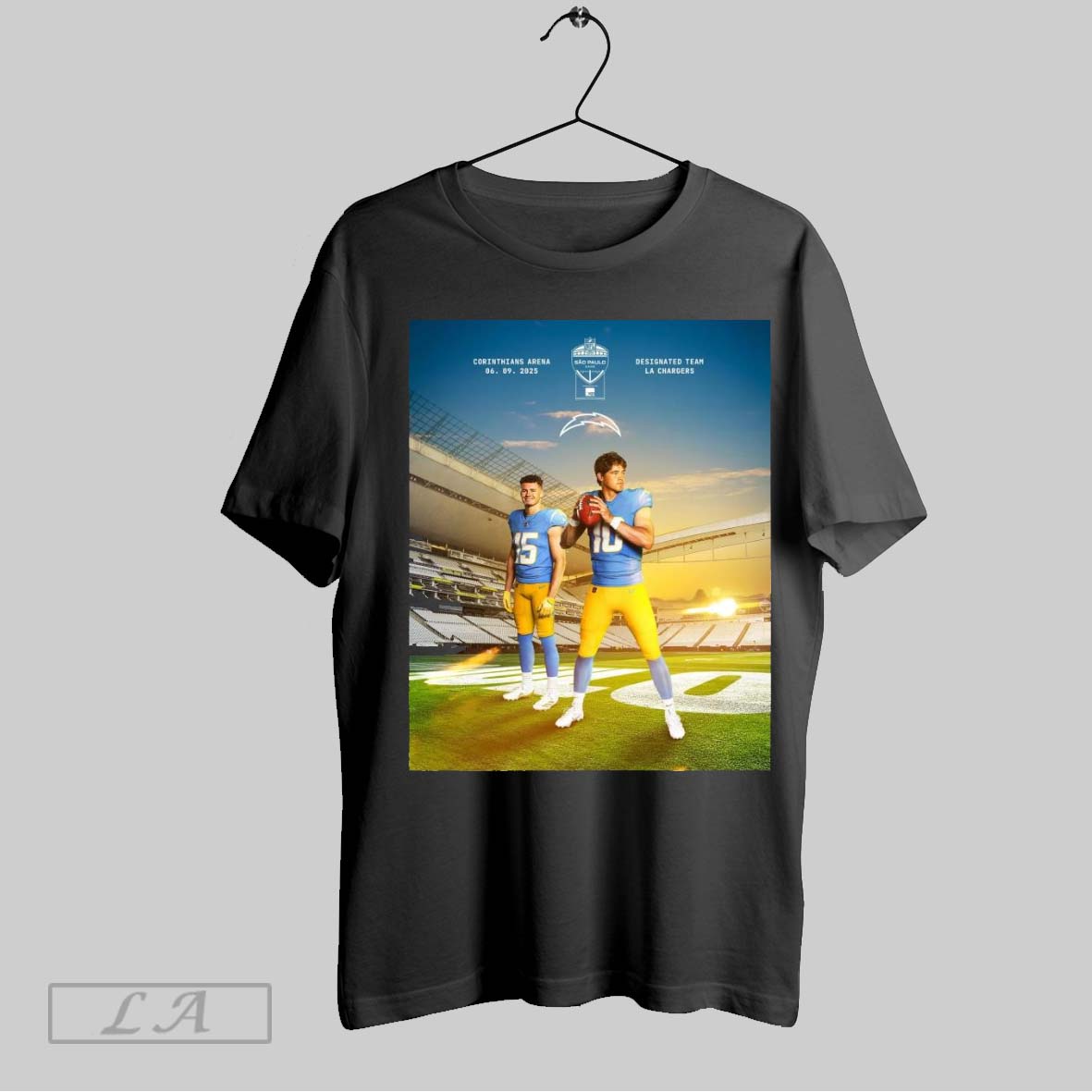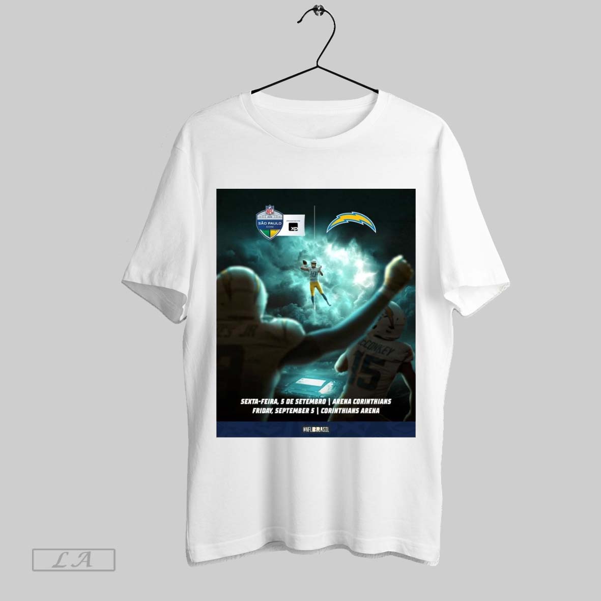 Original Los Angeles Chargers Sexta Feira 5 De Setembro Arena Corinthians Fri Sep 5 Corinthians Arena Nfl Sao Paulo Game Poster T Shirt Sweatshirt Tee Shirt