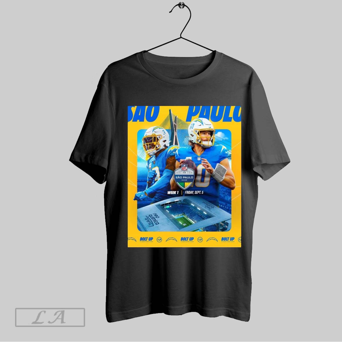 Original Los Angeles Chargers Football 2025 Nfl Sao Paulo Game Week 1 Friday September 5 Bolt Up Poster T Shirt Sweatshirt Tee Shirt