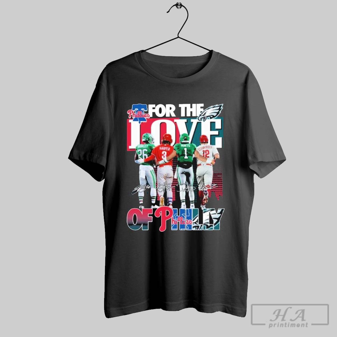Saquon Barkley And Jalen Hurts Philadelphia Eagles X Bryce Harper Kyle Schwarber Philadelphia Phillies For The Love Of Philly Signatures T Shirts